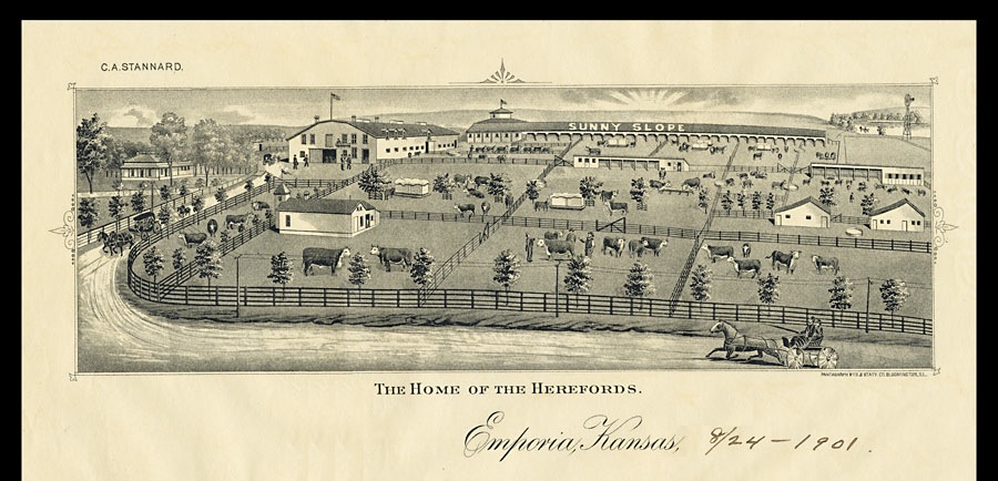 Letterhead of a hereford ranch, Emporia, Kansas, 1901. Printed by Pantagraph Printing and Stationery of Bloomfield, Illinois