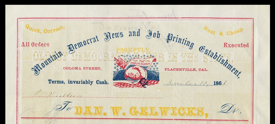 Billhead, Placerville, California, 1865