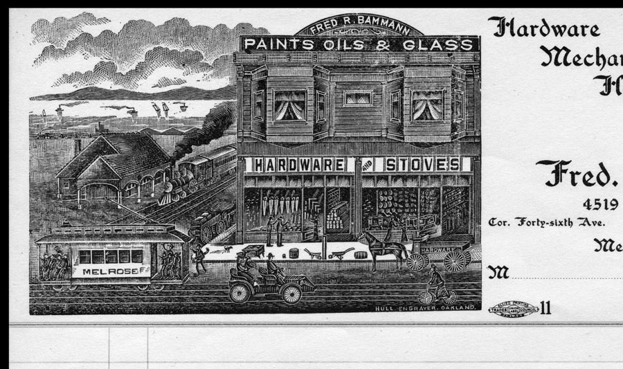 Billhead ( detail ), 1900, for a Melrose, California store. Wood engraved by Hull of Oakland.