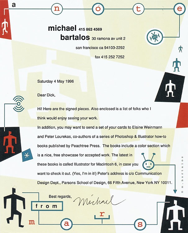 Letterhead, 1996. Michael is a fantastically talented illustrator whose work is especially admired in the United Sates and in Japan.