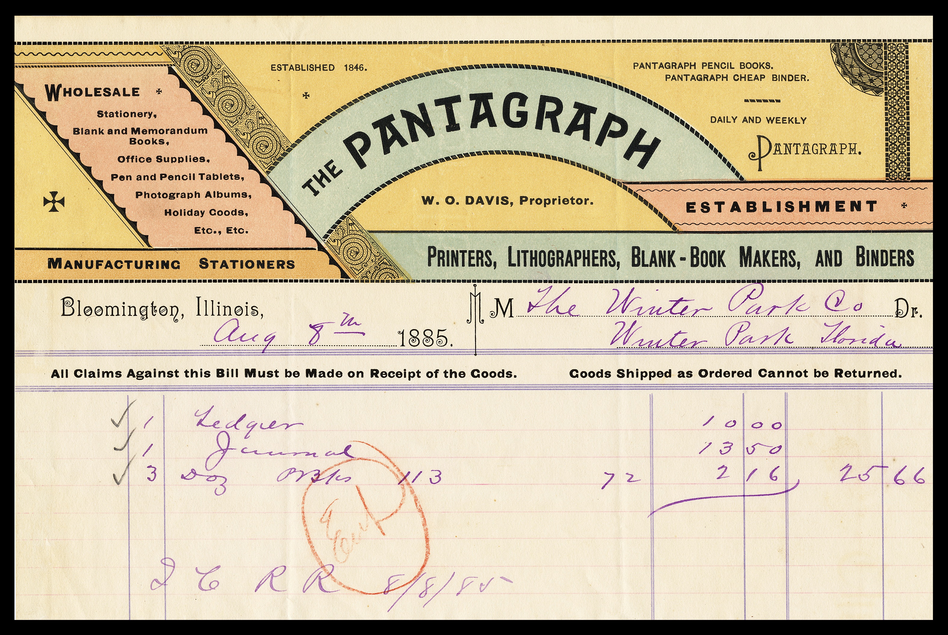 Billhead, 1885