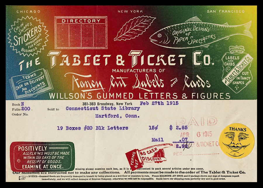Billhead, 1915. Split fountain printing.