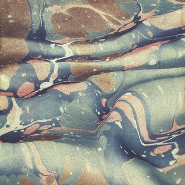 Early Spanish pattern, in a book bound in Madrid, 1804. A Turkish patterned design floating on size was moved as paper was laid upon the design.