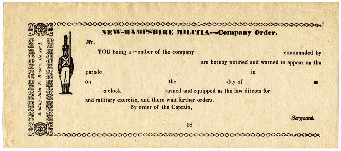 An unused blank form, sold (and no doubt printed) in Concord, New Hampshire