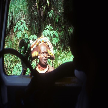 Huli man, one of an armed party men on a remote road. He regaled us with tales of the first time he had ever seen an airplane.