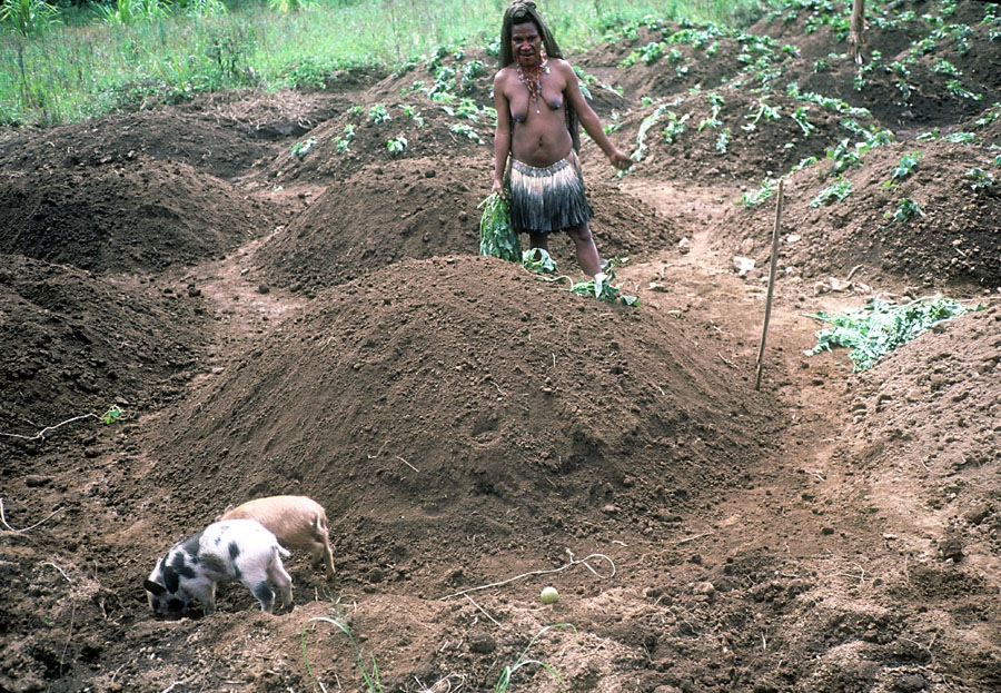 The wife of the man shown in the previous image. The role of Huli women is to tend the yams and the pigs. Papua, New Guinea