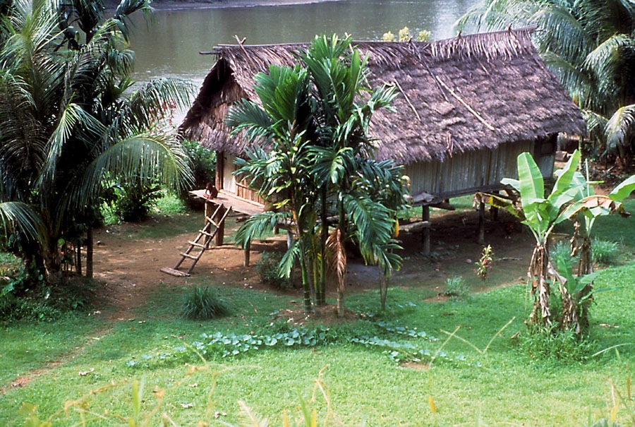 A house beside a branch of the Sepik River, Papua, New Guinea.