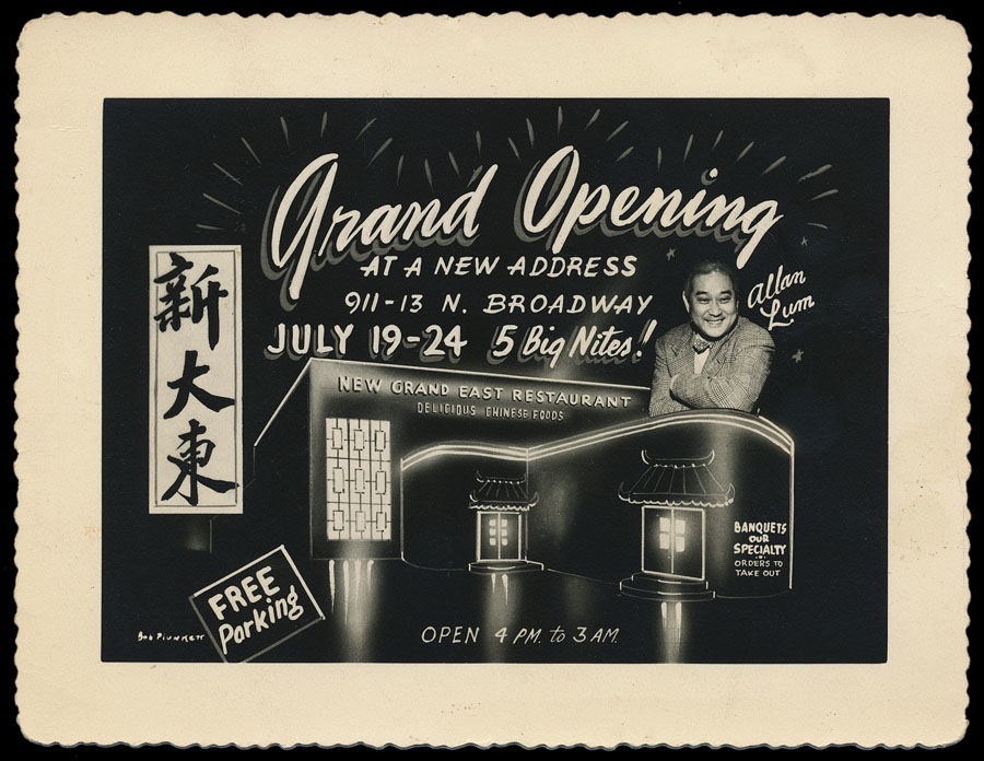 A photomontage promotional card for a New York City restaurant, signed by G. Plunkett