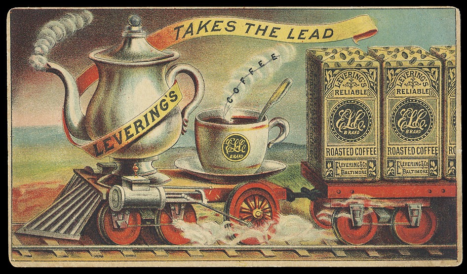Trade card. This has long been one of my favorite Victorian whimsical images, complete with wacky perspective on the wheels,