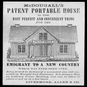 Interesting early trade card promoting pre-fabricated houses for new emigrants wanting to live in the Mid-West and West.