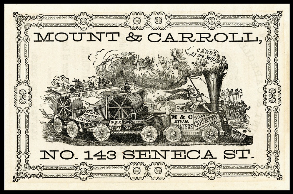 Advertisement for Cleveland job printer, stationer, binder and blank book manufacturer. "Cards by the millions"