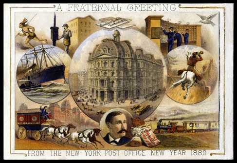 There are a number of interesting 19th century printed pieces distributed by post offices and mail carriers, distributed at New Years. See also this.