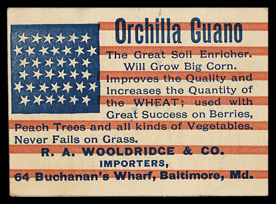 Trade card. Patriotic bird droppings?