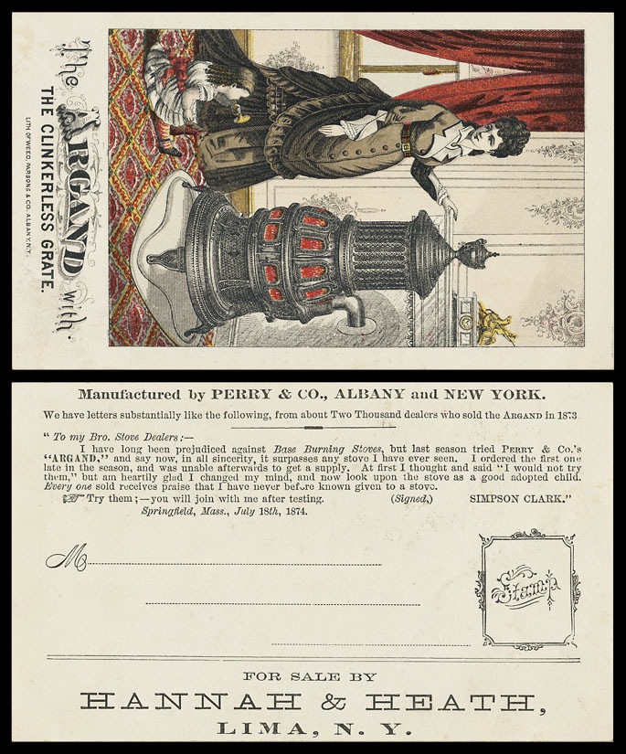 A pioneer private advertising postcard, dated 1874. This design also exists as a trade card without the postcard back.