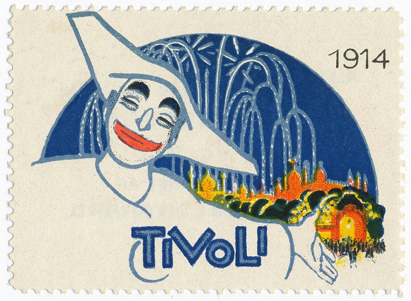 Poster stamp, 1914, presumably for the Tivoli Gardens amusement park in Denmark.