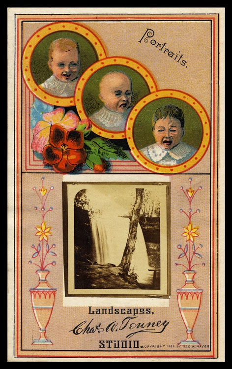 Photographer Charles A. Tenney of Winona, Minnesota advertised a wide range of photographic services on the back of the card, but featured a small