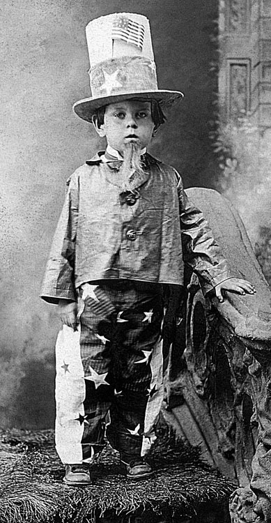 Unmounted carte de visite size image of a boy dressed as Uncle Sam, no photographer identification