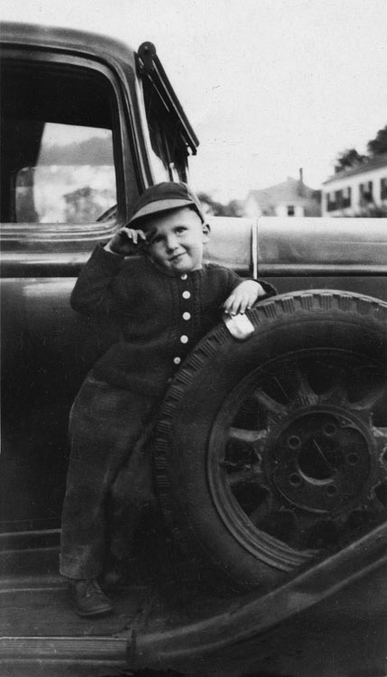 Yours truly, 1947, on my grandfather's ca1930 automobile running board