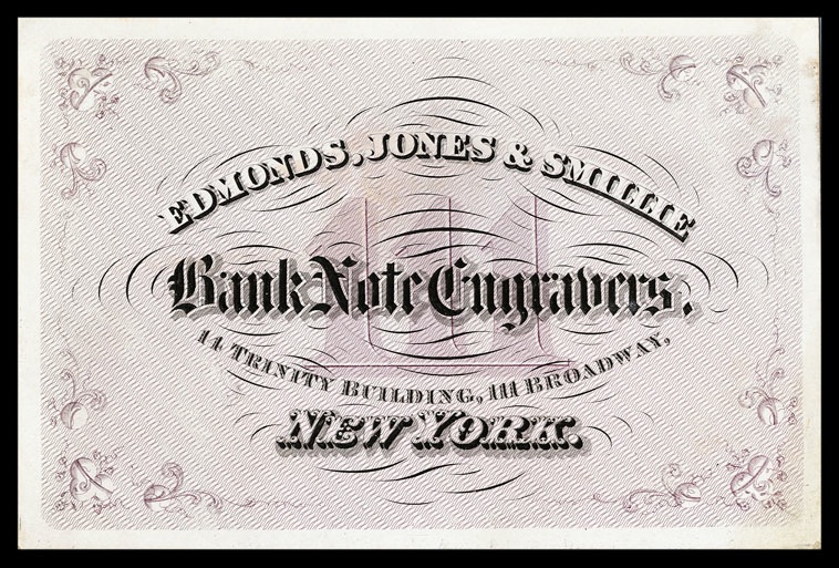 Trade card, engraved. James David Smillie was one on the counrty's most talented and prolific engravers. ( Collection of Joe Freedman )