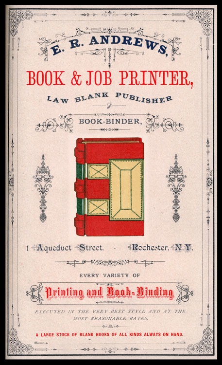 Full page advertising insert on card for a Rochester, NY book & job printer
