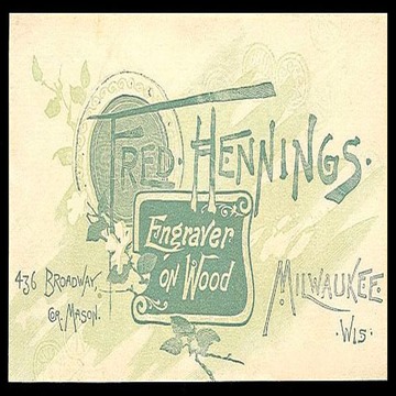 Trade card for a Milwaukee engraver on wood ( not in Sheaff collection )