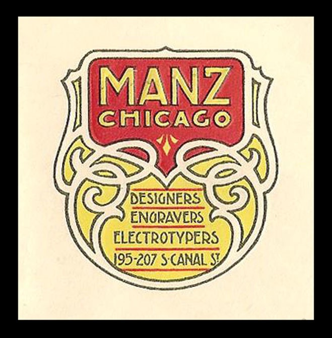 Device for a Chicago designer, engraver and printer, from an advertising cover mailed in 1899 ( not in Sheaff collection )