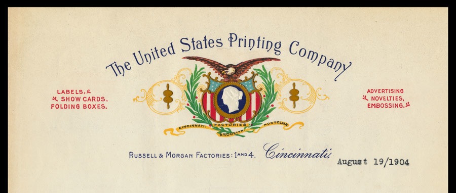 Letterhead, 1904. In 1891, the firm of Russell, Morgan became The United States Printing Company.