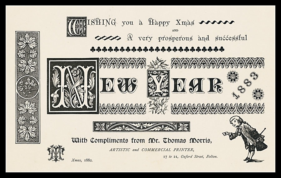 Christmas and New Year card, 1892-1893, sent out by a British printer