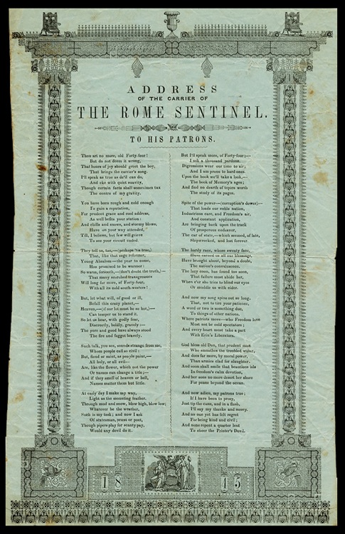 Carrier's address, 1845 (Courtesy Brown University Library)