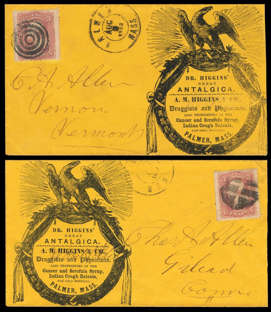 Advertising covers, one "wrong-sided" (dated 1863), and one conventional (Sheaff Collection)