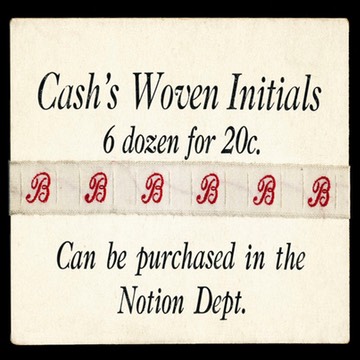 Card with sample strip of woven initials